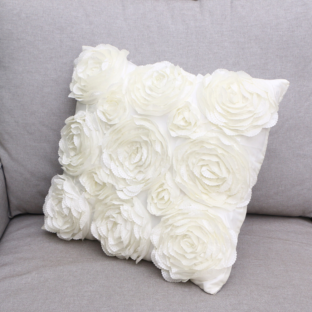 42 X42CM Embroidered Throw Pillowcase Flower Cushion Rose Square