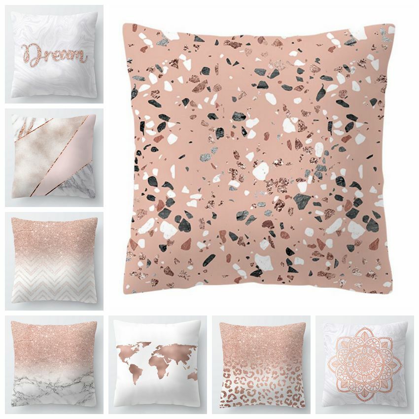 Golden Pink Home Decor PILLOW COVER Sofa Bedding Abstract Cushion Case 18x18" US